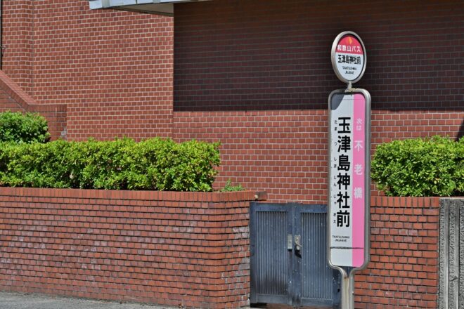 降り立ったのはこのバス停。玉津島神社は、和歌の神様が祀られていることで知られています。わくわくドキドキ。気合十分。いよいよ県下屈指の干潟と対面できることになりました。ちなみに下車したのはキワメテスタッフだけ。平日だから仕方ありませんが、地元の人たちにとっては干潟なんて別段珍しくないのかも知れませんね。