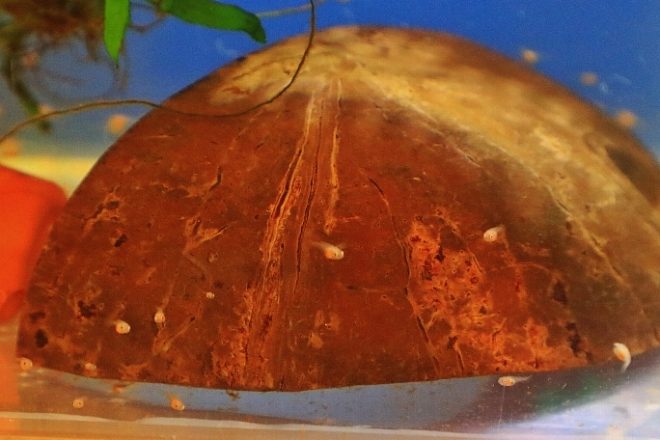何とまあ可愛いプラカットの稚魚たち。生後約2週間目で元気に成長中です。