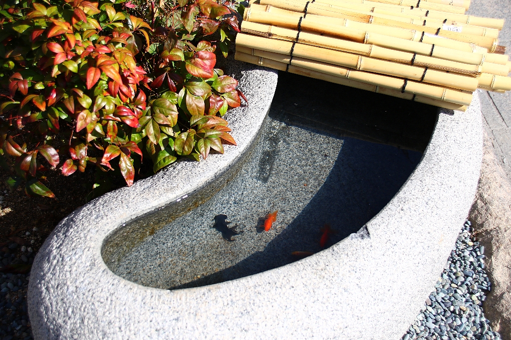 記念写真でも撮ろうかと思いきや、な、な、なんと色鮮やかなリュウキンやデメキンが泳いでいるではありませんか!