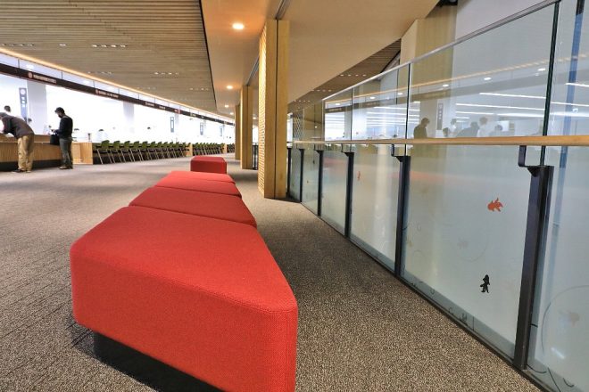 というか、2階はまるでホテルのロビーのようで1階とはまた違った趣が印象的です。赤のシートも映え、全体的にすっきりしています。ああ、ここにも90㎝くらいでいいから水槽があったらなぁと、つくづく(笑)。