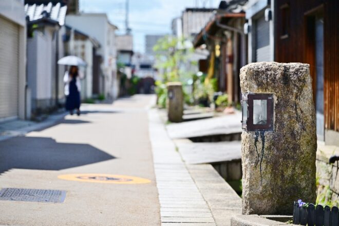 そして、ところどころ目につくのが古い木造家屋。今も人々のくらしがあり、寺内町の雰囲気を色濃く残す特徴的なシンボルでもあります。