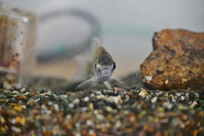 早速魚たちをご紹介。こちらの水槽には、大和川を中心にした川魚のオンパレ。そう、八尾といえばやっぱり大和川ですからね。