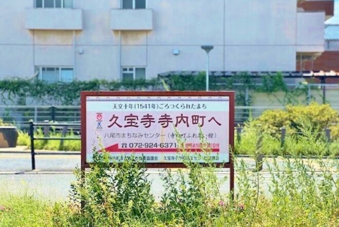 JR大和路線・久宝寺駅を降り立つと、こんな看板が。飛鳥時代、この付近に聖徳太子が建てたといわれる久宝寺が、駅名や地名の由来となっているのだそう。大和路快速の停車駅であり、おおさか東線乗り入れなどの利便性ばかりが目につきますが、こんな歴史があるとは知りませんでした。